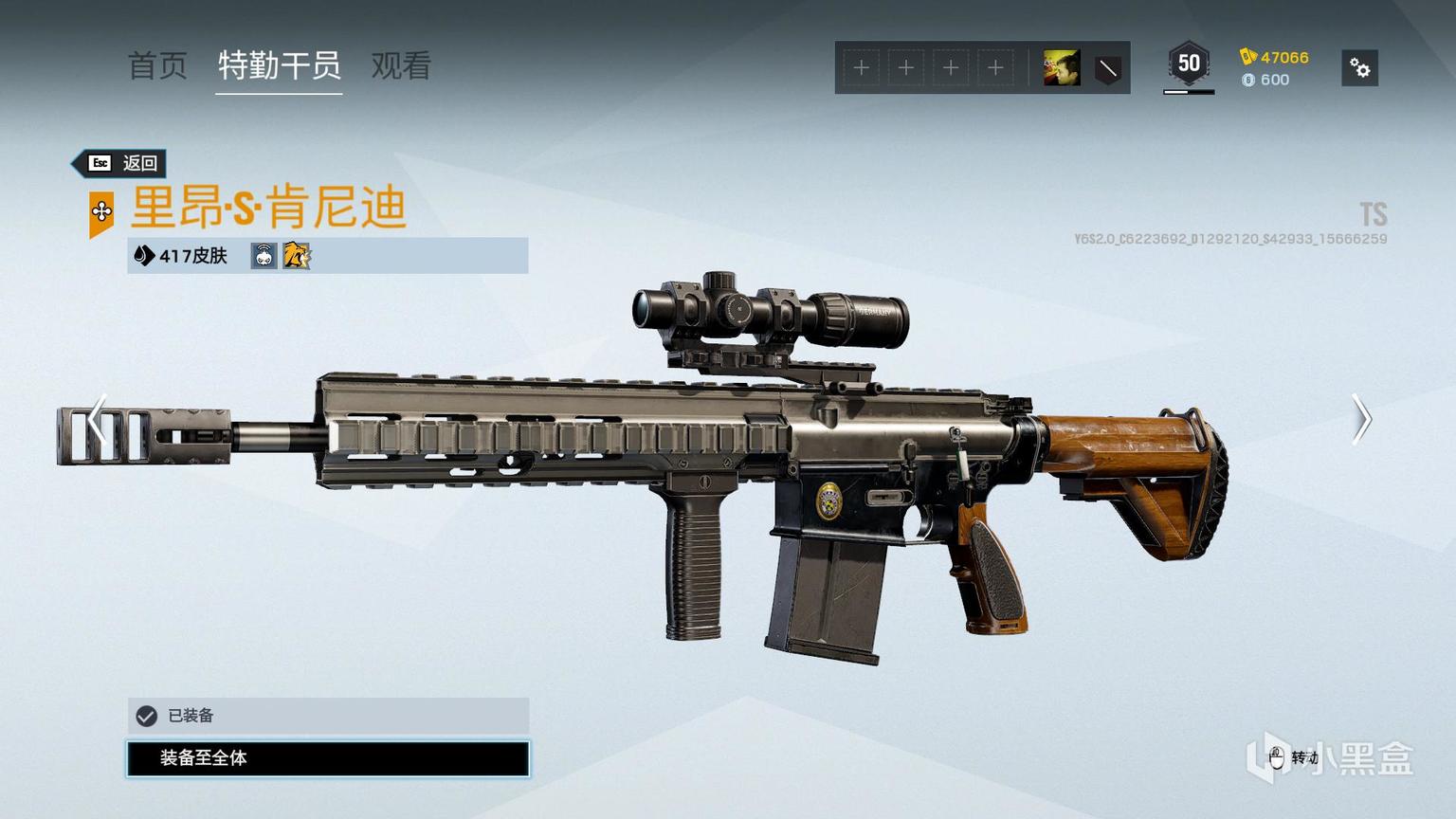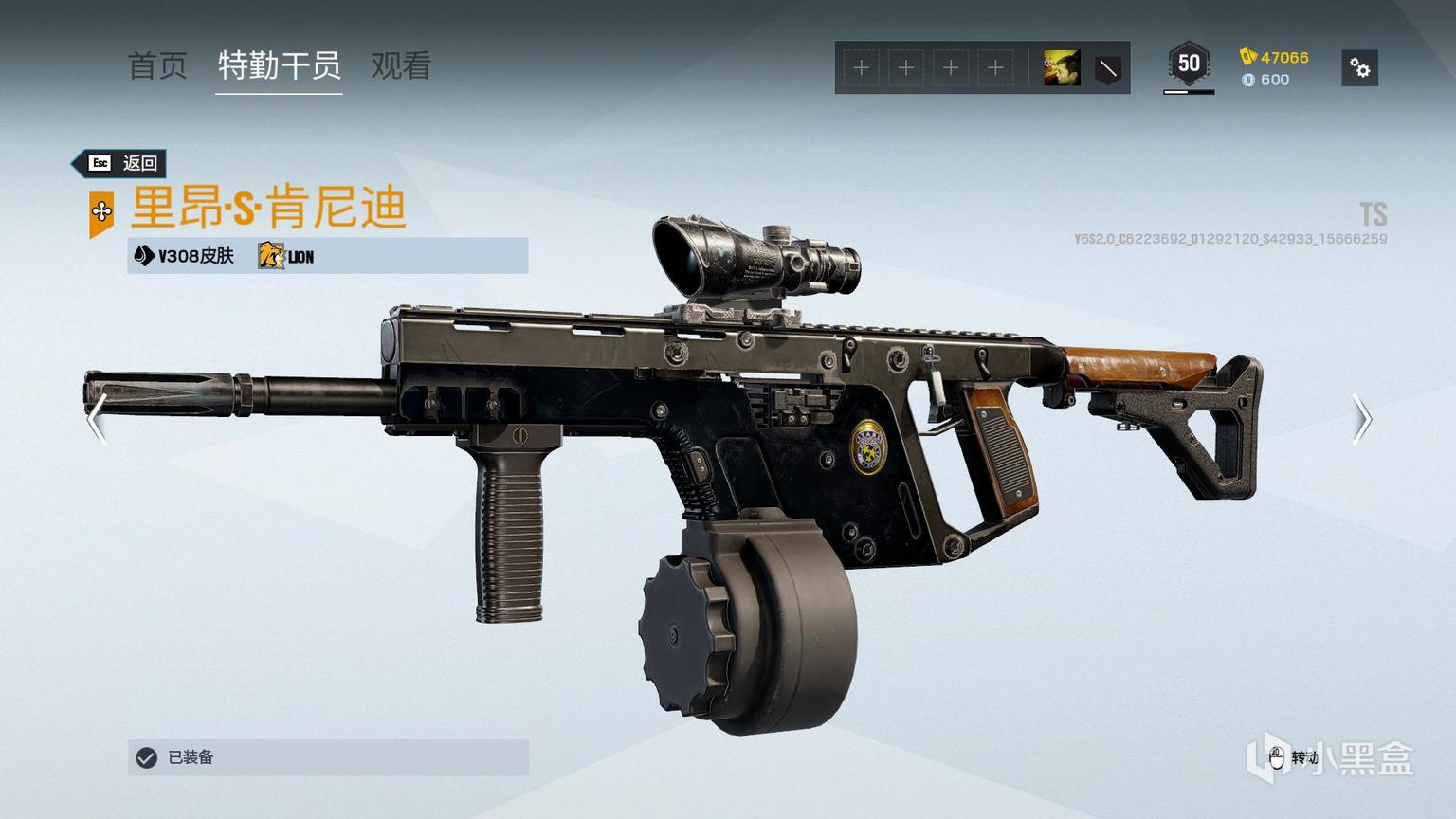 Y308武器,笔者选取默认配件涂装。枪支有较多黑色金属材质,材质靠后处有指定logo(稍后介绍)。