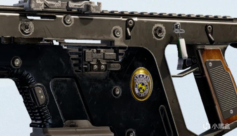 枪支上的logo,是联动生化危机2里面的浣熊市警局的STARS小队(Special Tactics and Rescue Service)。实际游戏中,玩家仅能在换弹时才能看见这个logo,只是象征意义。