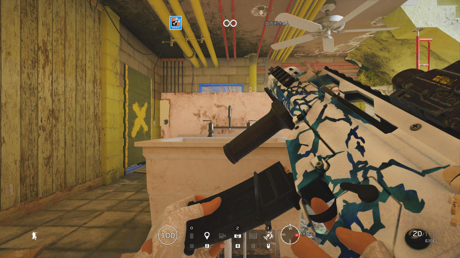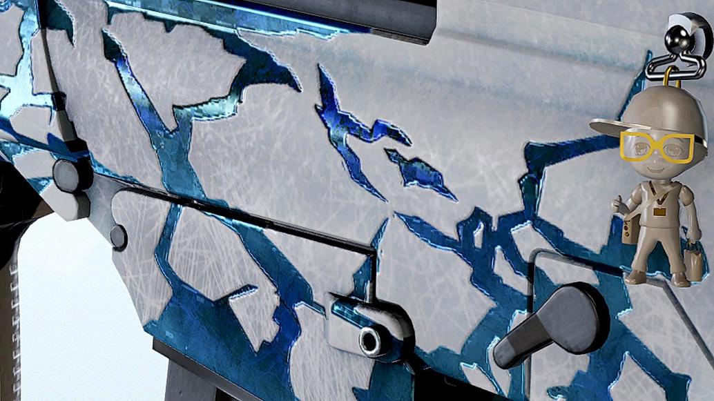 在室内光线不足处,这款武器皮肤的蓝白龟裂效果变得明显。
