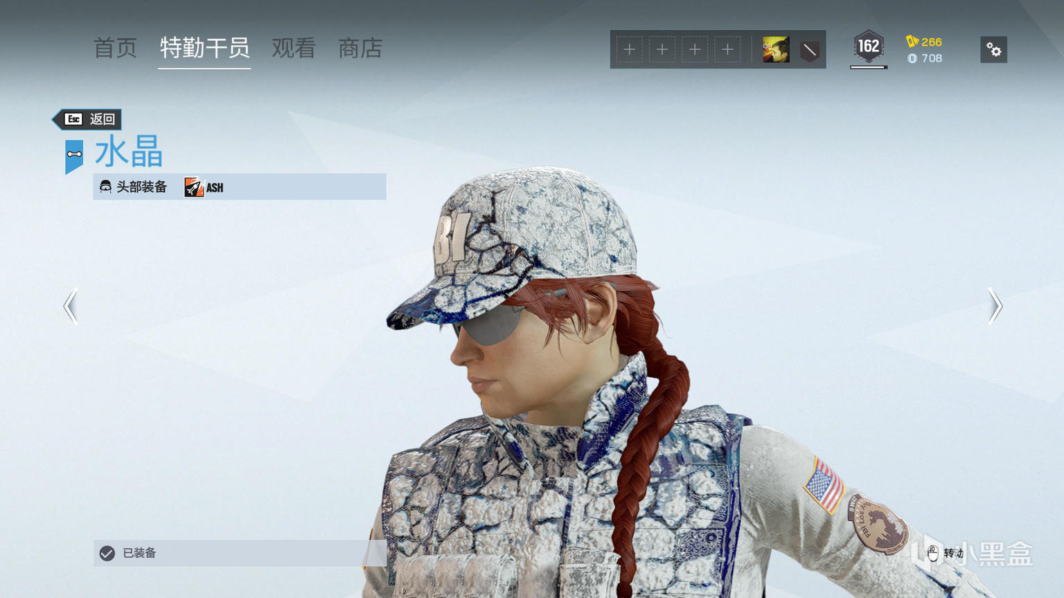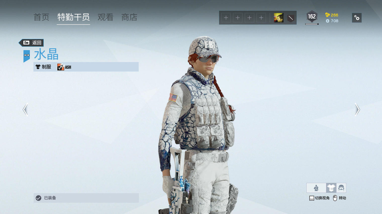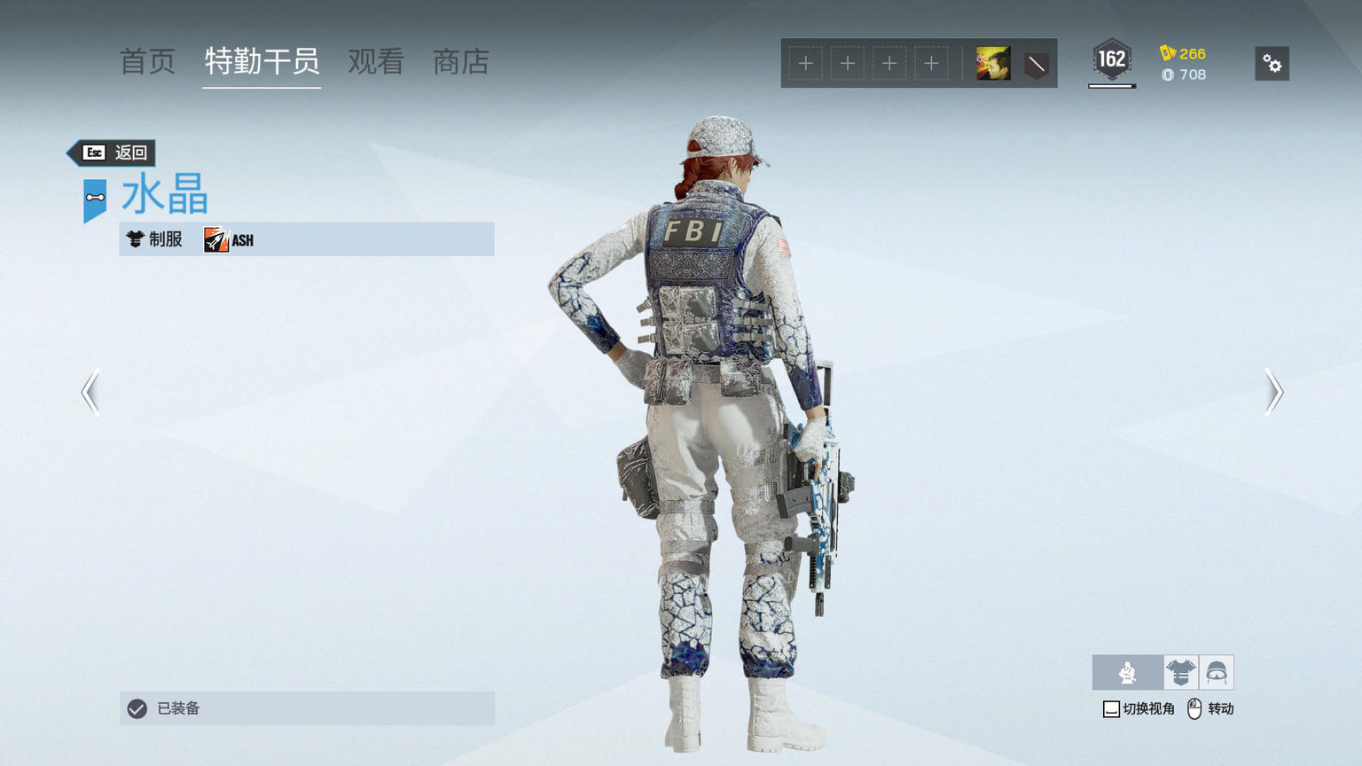 制服上门的防弹衣上,能看到更多蓝白交织的设计,特别是两侧区域蓝色面积更多。Ash前臂的结晶过渡效果明显。