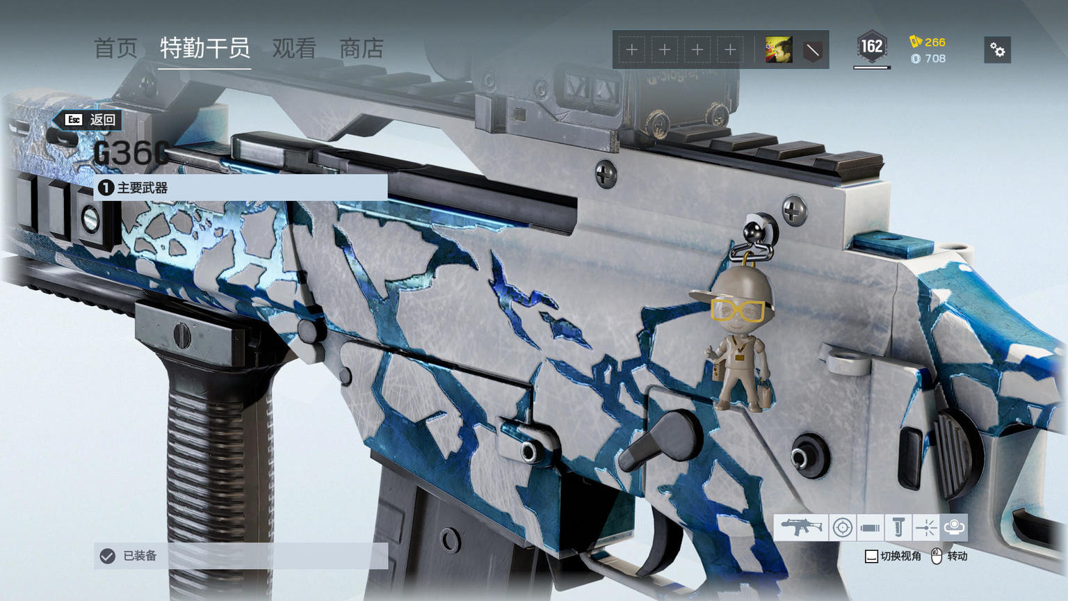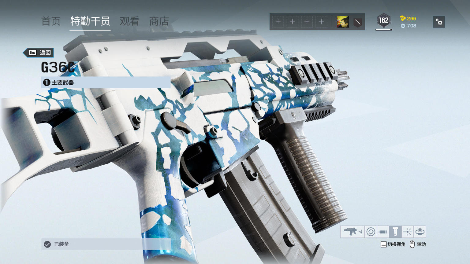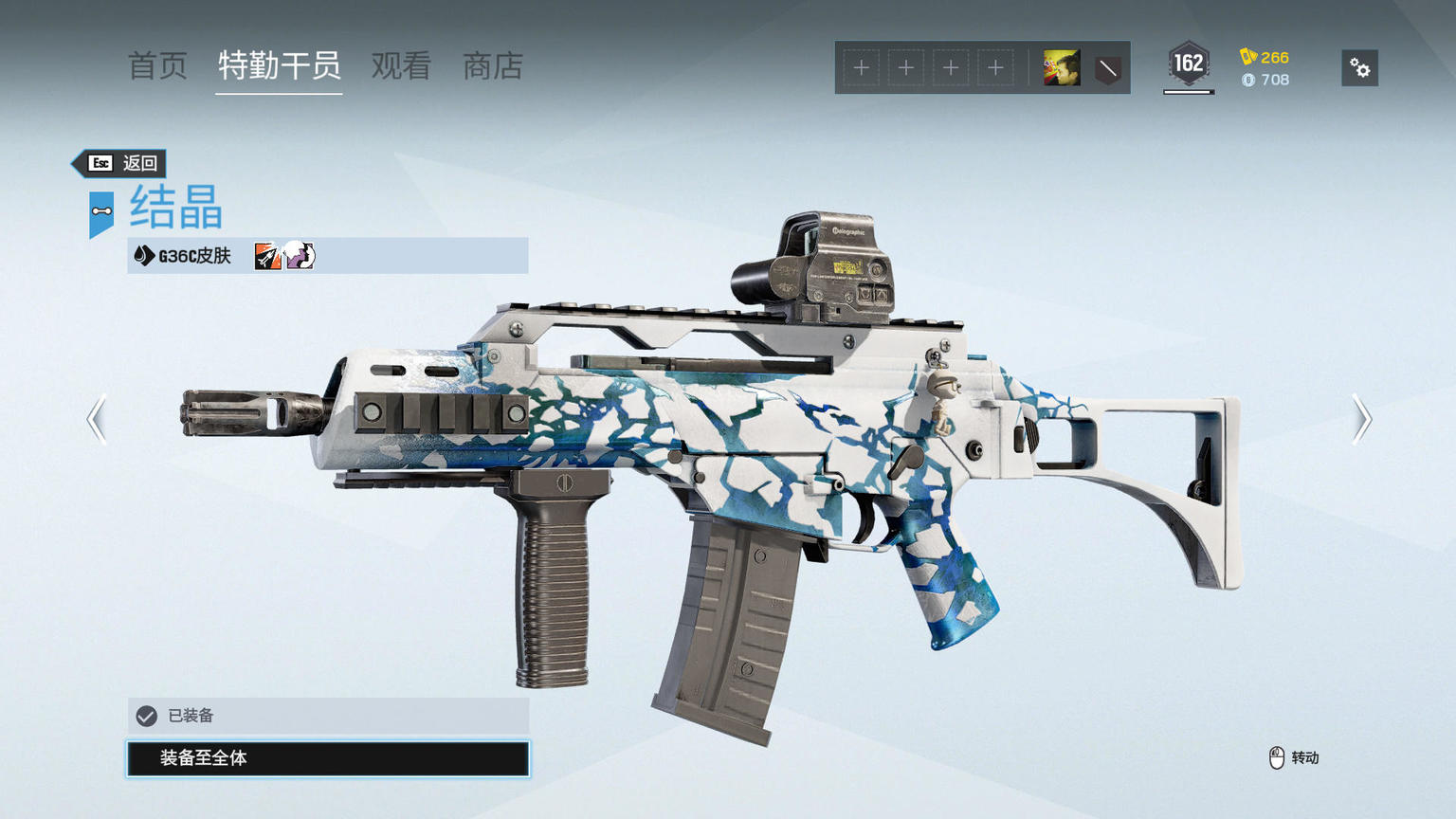 G36C枪支结晶皮肤,依然是深蓝色和白色的搭配,但和之前的制服纹理是不同的。