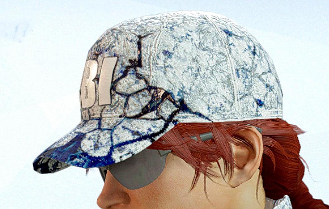 帽子上的蓝色纹理有冰水混合物的临界效果,在不同的角度下,蓝色光泽会变化。