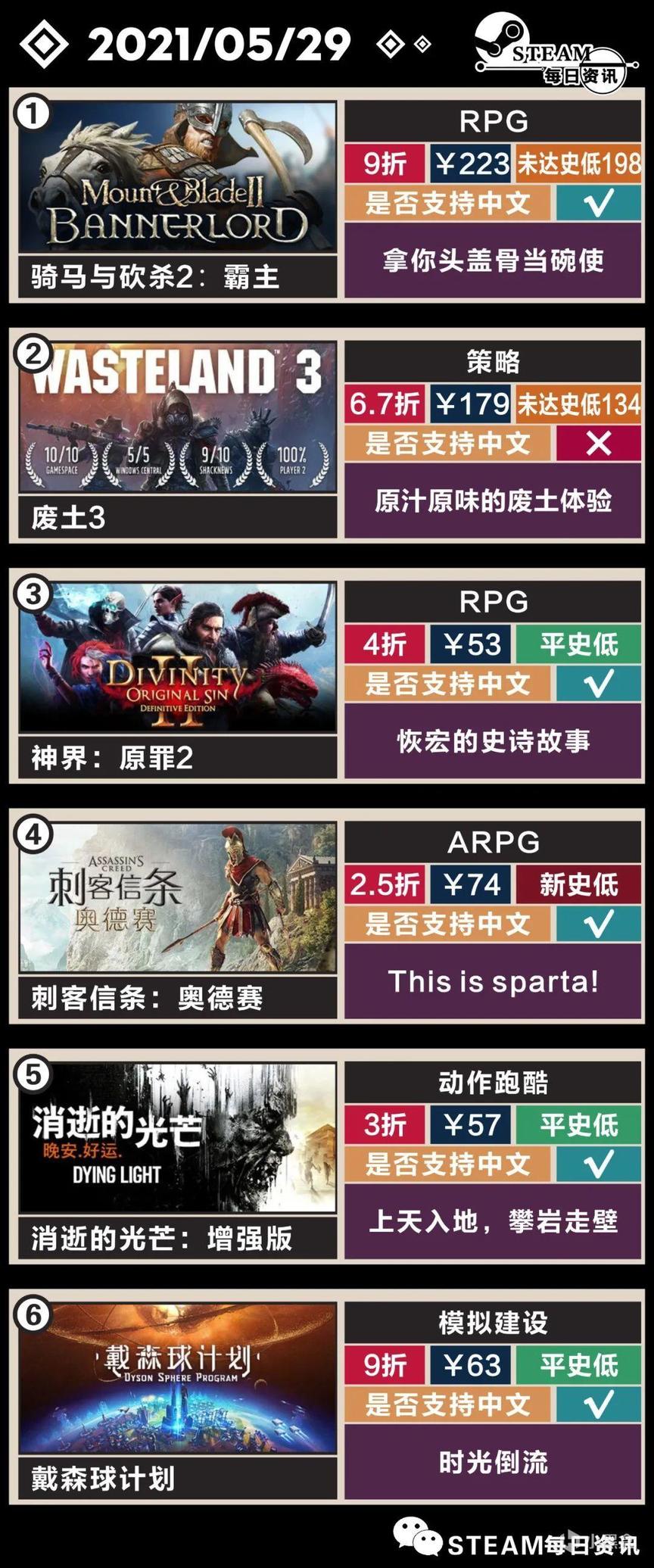 恢宏的史诗故事 - 神界:原罪2,RPG,支持简体中文,4折,售价53,平史低(首次史低时间20.9.10;最近史低时间21.2.17,近6个月均为4折),性价比良好,促销截止6.1。