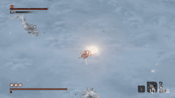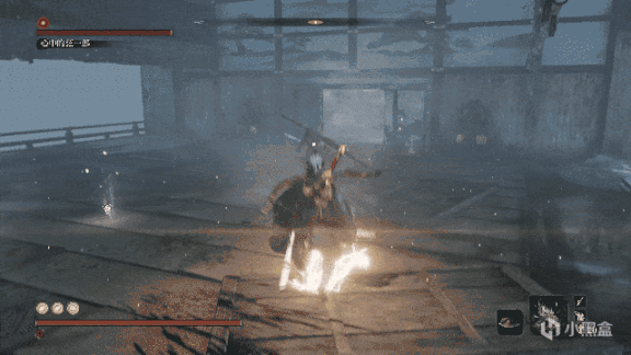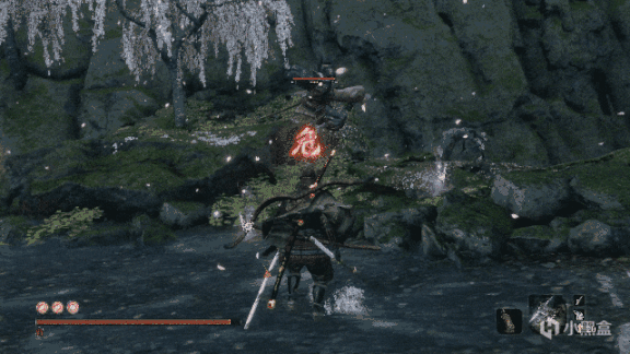 或者我们也可以提前释放樱舞,让前两段伤害全部打在敌人放雷的霸体上(弦一郎释放雷电期间为绝对霸体不可被打断),这样第三段也能成功打在弦一郎的3024号预备雷反动作上,于是弦一郎成功雷反。