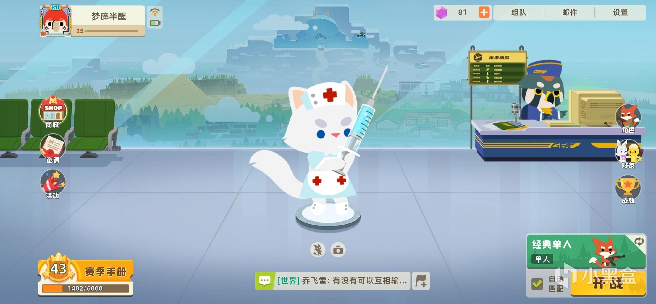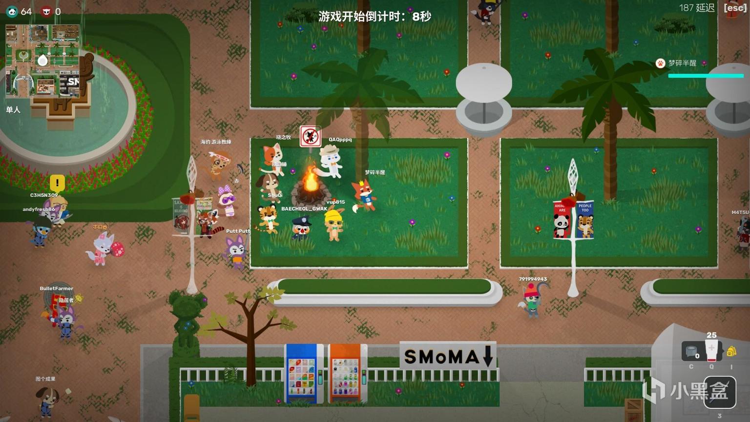 在激烈的大逃杀环境中,小动物设计得很可爱,小小的眼睛,呆呆的表情,温柔的声音,让人少了些许紧张感。整个卡通场景也很舒服,没有刻意的渲染恐怖和血腥的环境,甚至喷泉都在播放轻松灵动的音乐。NPC也非常友善地跟你互动。就像《糖豆人:终极淘汰赛》一样,可爱的风格让人虽然是在玩竞技游戏,但更多感受到的是休闲娱乐。