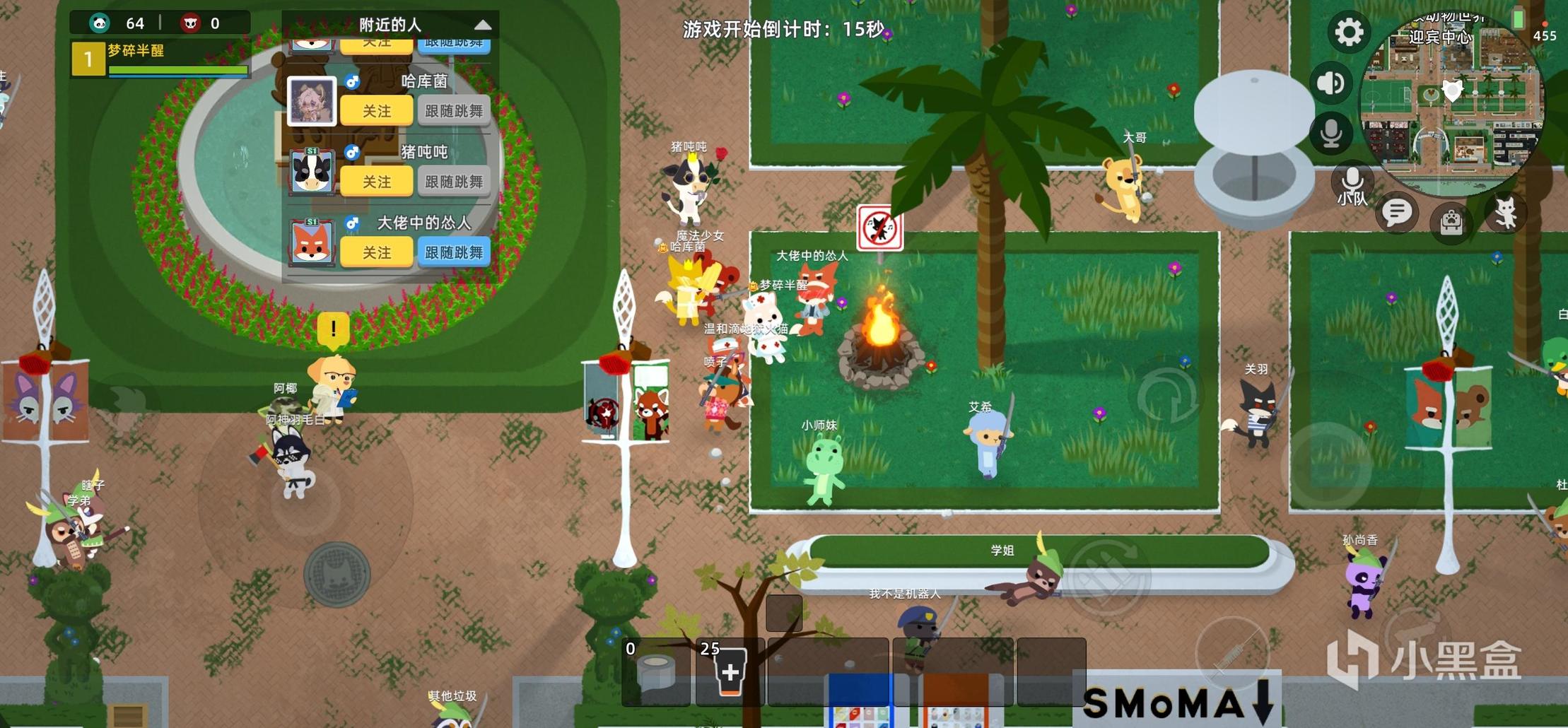也许是因为游戏节奏快,大家也骂不起来,也许是画风非常治愈,大家脾气也好了很多。在公屏上有时候会友善交流。很多时候在出生点旁边的火堆旁边,大家总会在一起跳舞,非常和谐(虽然旁边插着禁止跳舞的牌子233)。