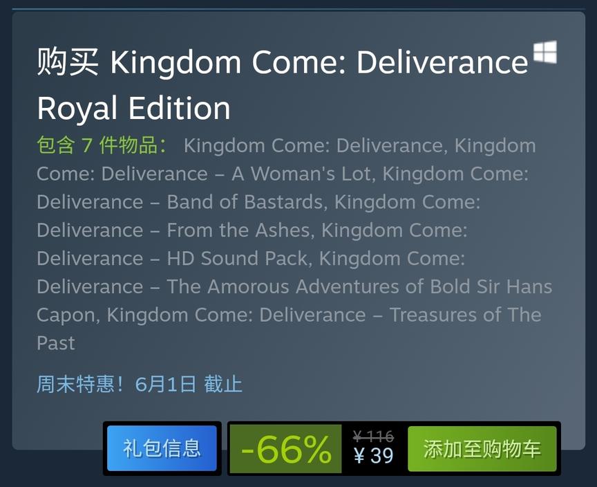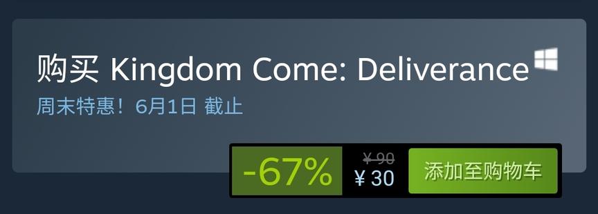 中世纪题材角色扮演游戏《天国:拯救》平史低30元