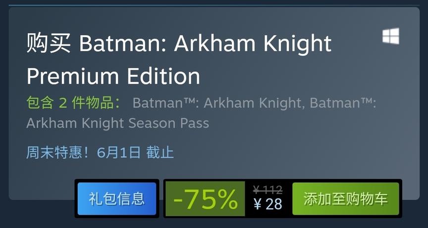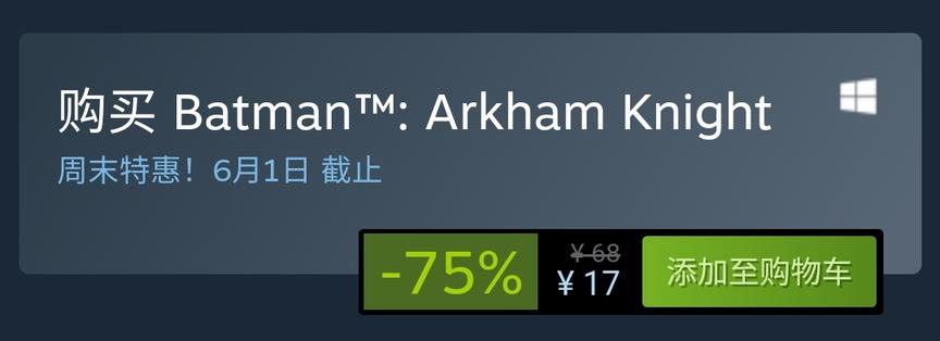 开放世界动作游戏《蝙蝠侠:阿卡姆骑士》平史低17元