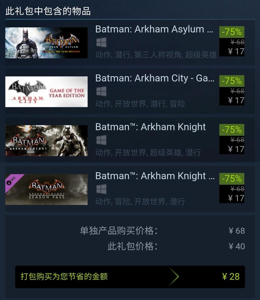 《蝙蝠侠:阿卡姆骑士》平史低;