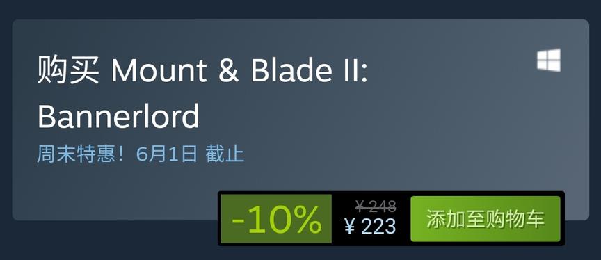 中世纪题材策略战争游戏《骑马与砍杀2:霸主》非史低223元