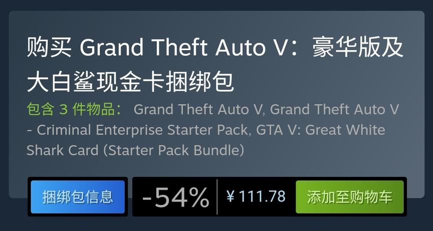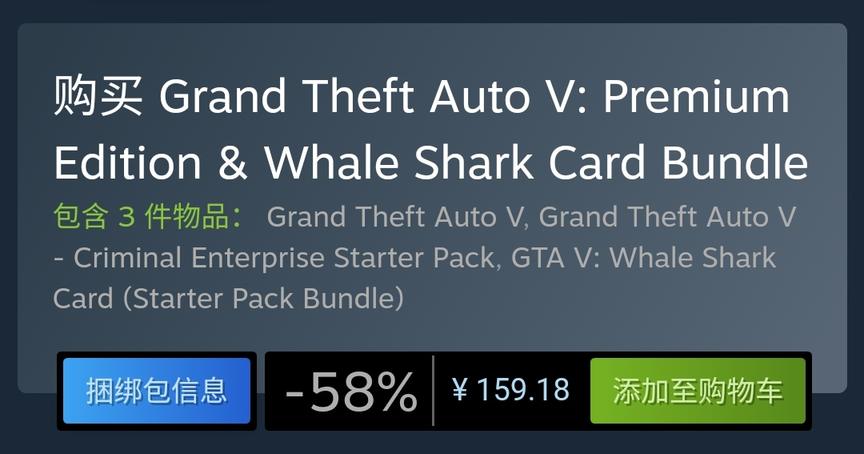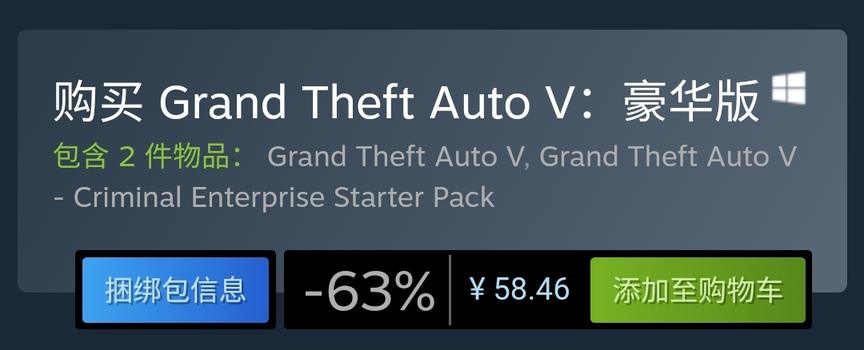 开放世界角色扮演游戏《侠盗猎车手5》豪华版平史低58.46元
