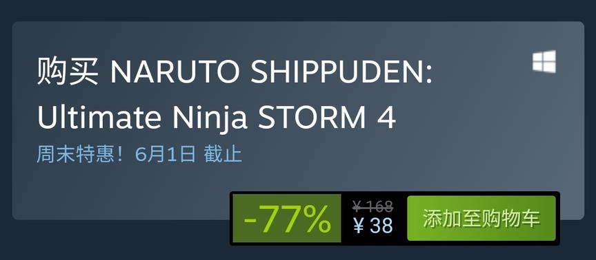 动漫题材格斗游戏《火影忍者疾风传:究极忍者风暴4》平史低38元