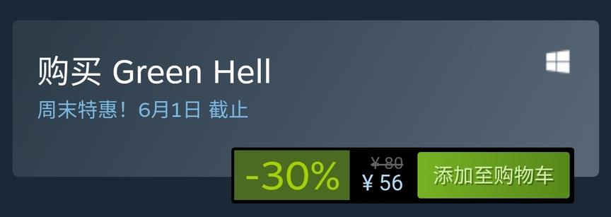 开放世界生存制作游戏《绿色地狱》平史低56元