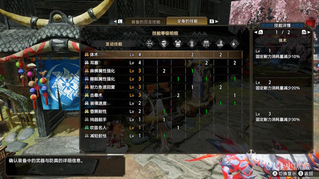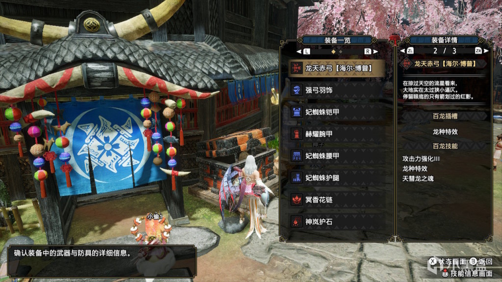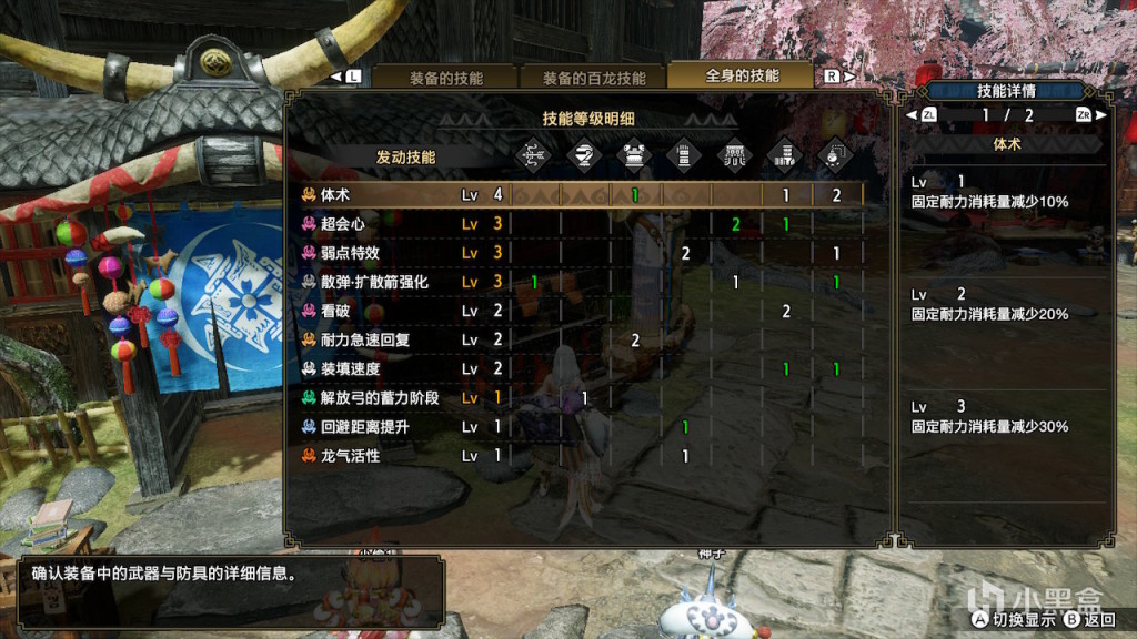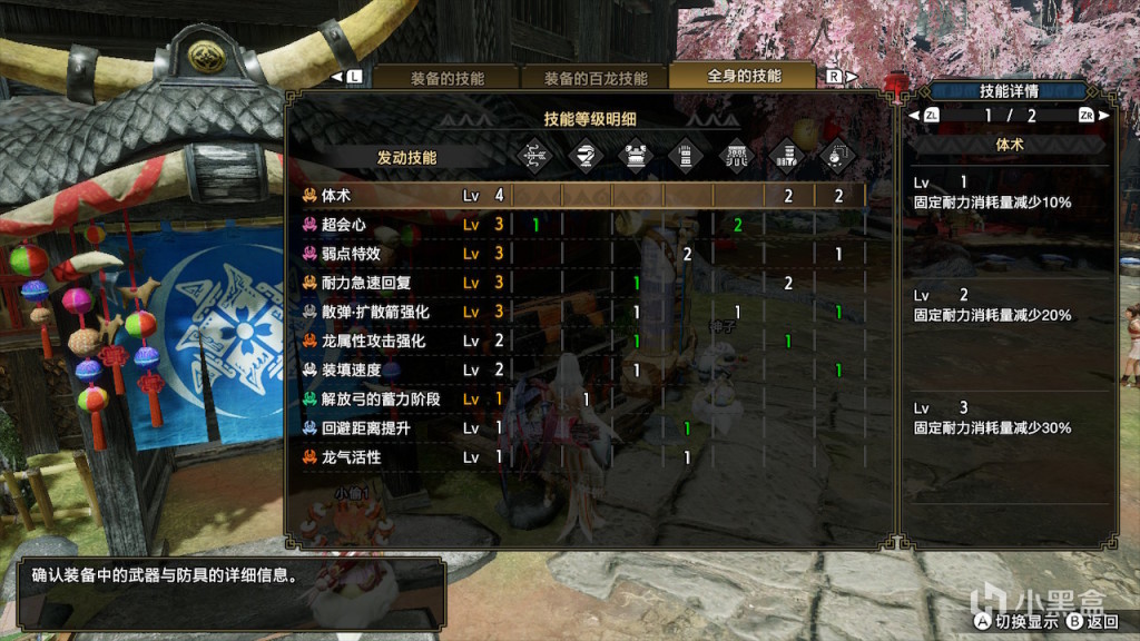 如果不追求龙气4的5%攻击力提升只出天彗3件,可以更舒服一些,但是伤害会下降。这里就不放配装了,打物理还是比通常配装强一些的,但是离属性连射还是有一些距离。龙属性的龙气套是可以用的,使用强弓头+天彗三件+妃蜘蛛腿+通2s2护石可以出到体术4耐回2,用风神弓百龙强化空栖系特效在不出属性强化的情况下都是强于普通配装的。