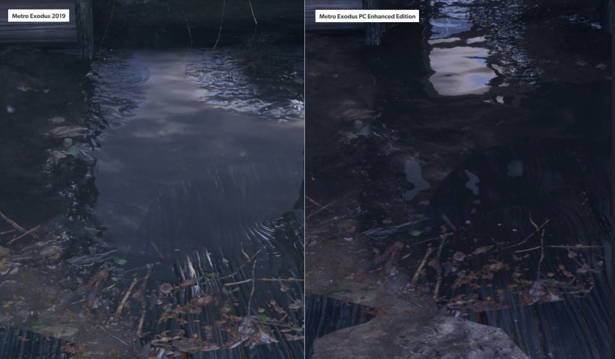 4A Games的努力到这里还没有结束,光追反射效果的加入在游戏中的水面上显得尤为明显,并且能够帮助清理空间反射效果不佳的那些区域。