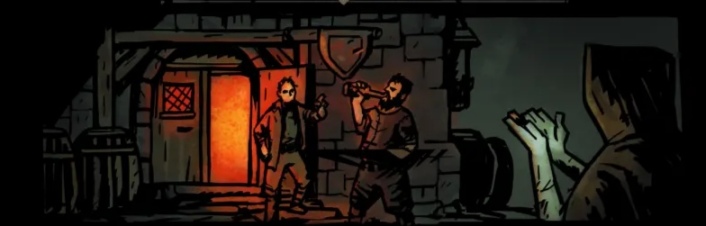 阵阵喧闹之声使酒馆隔绝了夜晚的压抑,在灯火的渲染下之下如孤岛般挺立于黑暗之中,在喷吐而出的微醺空气下,摇晃的二人互相开着下流的玩笑走出酒馆。在温暖人心的灯火无法涉及的地方,恶意静正悄悄地滋生,趴伏在黑暗中的乞丐像是索求着什么似的将双手伸向了达米安。
