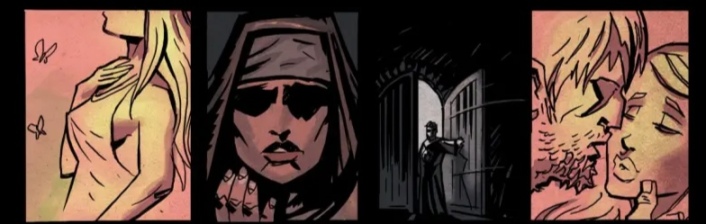 红勾在并未挑明达米安究竟是漫画中的施暴者还是乞丐,但根据他的专属装备“断裂的牙齿”以及”带血的玻璃碎片“,乞丐是达米安的可能性比较高,但在苦修者的立绘中,他的牙齿确实完整的。这个理由或许过于牵强,但将施暴者对应达米安更能体现漫画中苦行的震撼,达米安在乞丐的身上看见了执着于信仰的狂热,以及乞丐沉溺在苦痛中欢愉。在这种狂热的感召之下,他也成为了下一个苦修者,前往孕育死亡的摇篮—哈姆雷特追寻他所希求的神迹。
