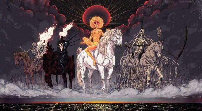 《圣经•默示录》中的天启四骑士分别为瘟疫、战争、饥荒与死亡,代表着瘟疫的白色骑士出现被认为是末日的前兆。