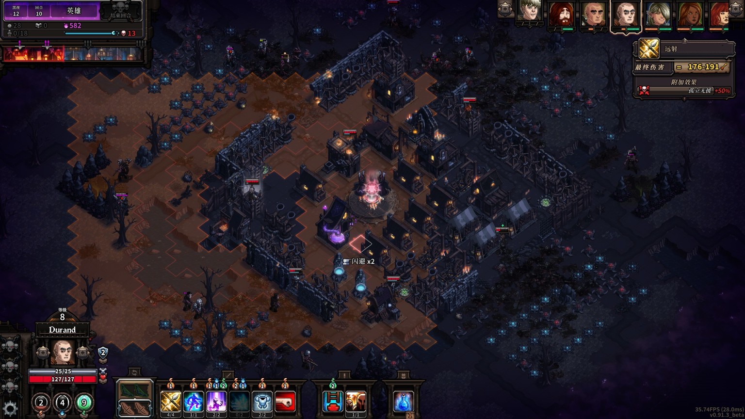 boss有四个,固定按右→下+左→上顺序隔几回合出现,全击杀后即可过关,不必清完小怪。boss有高达50的格挡和200护甲,容易刮痧,我的处理是高移动近战英雄叠横冲直撞(按照移动步数加百分比伤害)来回跑创死。