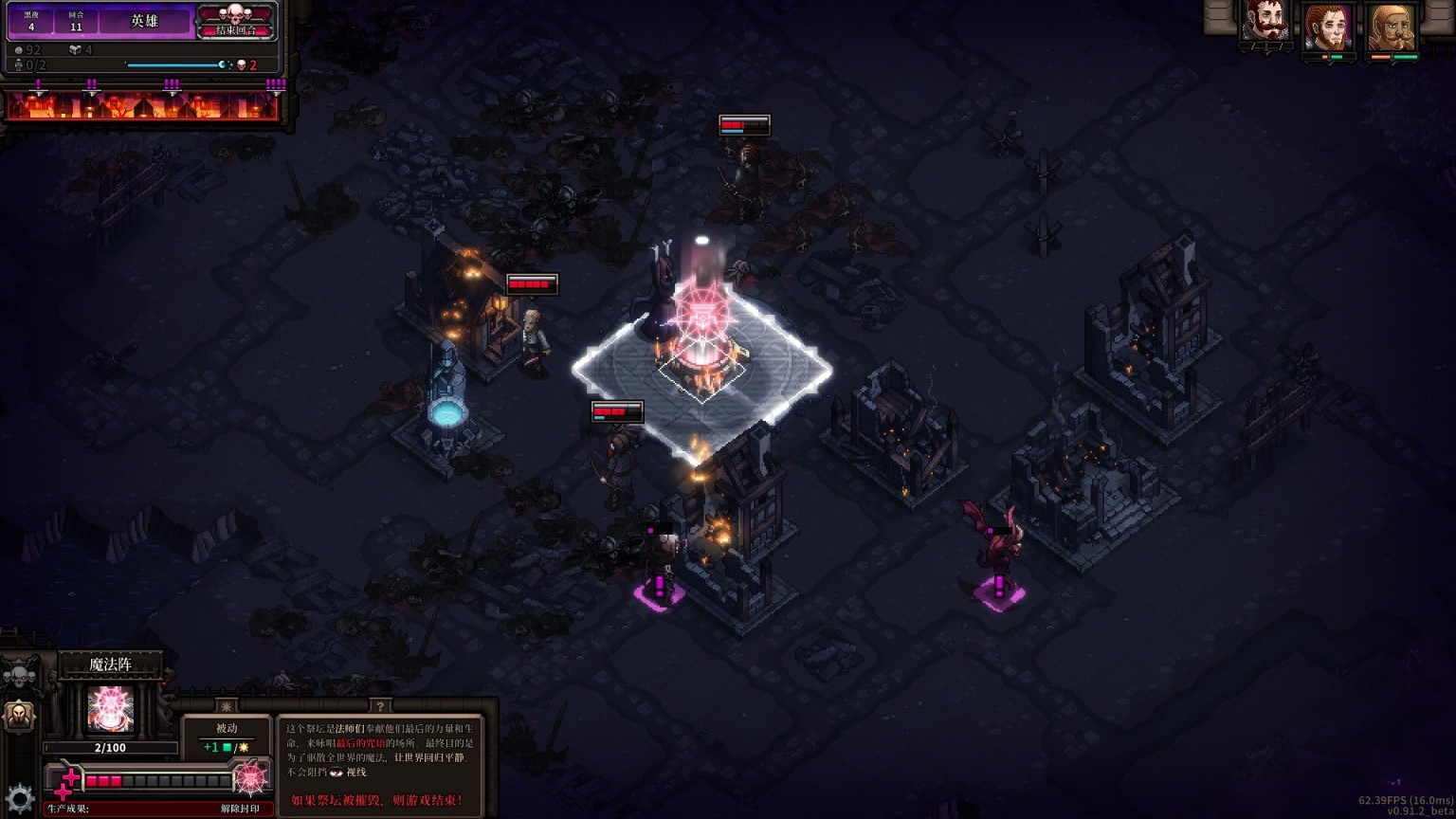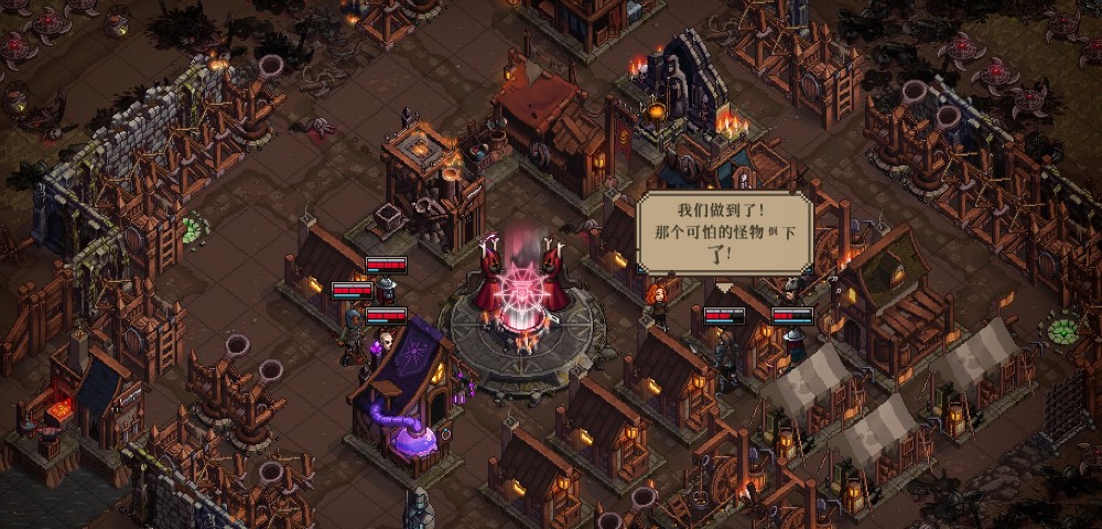 你只有三个拿着破烂武器的英雄,身后是一片断壁残垣,面前是数以百计的怪物——第一把游戏虽说是“普通难度”,实则是一个下马威,让玩家需要打起十二分精神仔细思考,精打细算的利用有限资源在猛攻中存活。