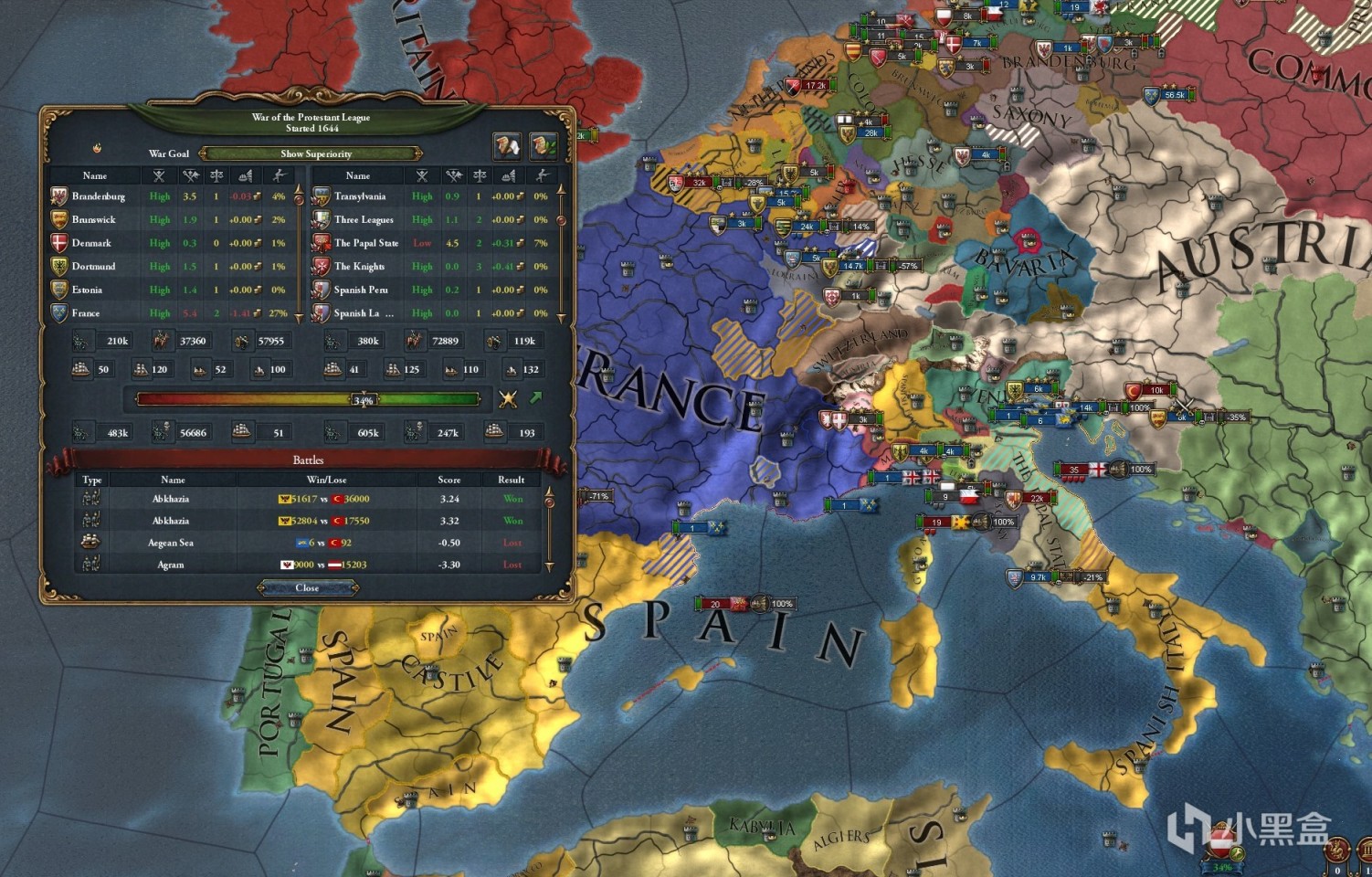 虽然历史上英国也就是划划水摸鱼,为反哈布斯堡联盟提供资金支持,但在游戏里,不列颠水师对击哈布斯堡王朝可是起到了巨大的作用,击败了西班牙舰队并封锁了西班牙的港口使西班牙的经济崩盘,进而使奥地利只能孤军奋战。
