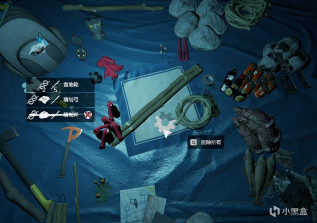 有了这两大工具傍身,我们接下来要做的便是生存类游戏常见的收集玩法了,除了砍树、采石、收集动物皮毛和肉类这样的基础资源外,我们还可以在岛上找到其他人掉落的行李箱和被使用过的营地,进而获取到一些诸如士力架、止疼药、电池这样的现代化道具。