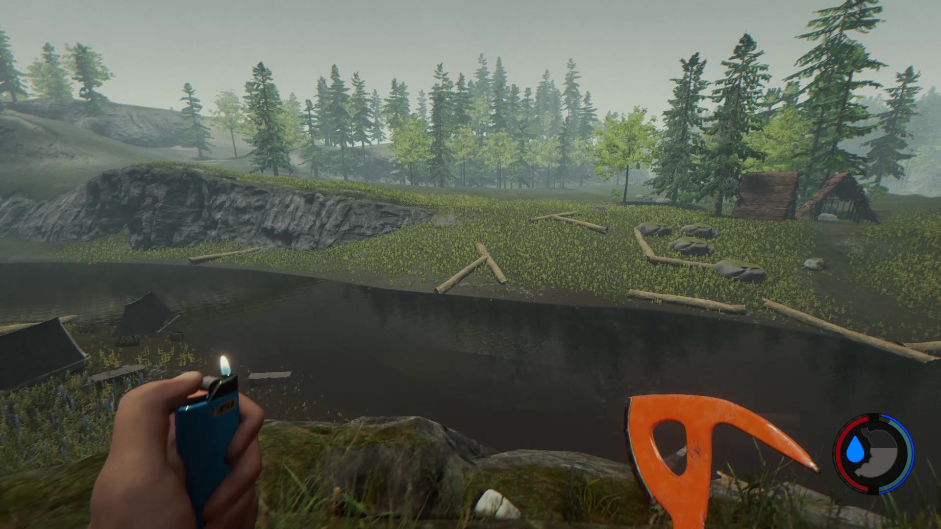 在游戏伊始,我们从飞机残骸中获取到的一把斧头,以及随身携带的一个打火机,便组成了我们整个《森林》生涯前期的两大法宝(直到获取现代斧为止)。