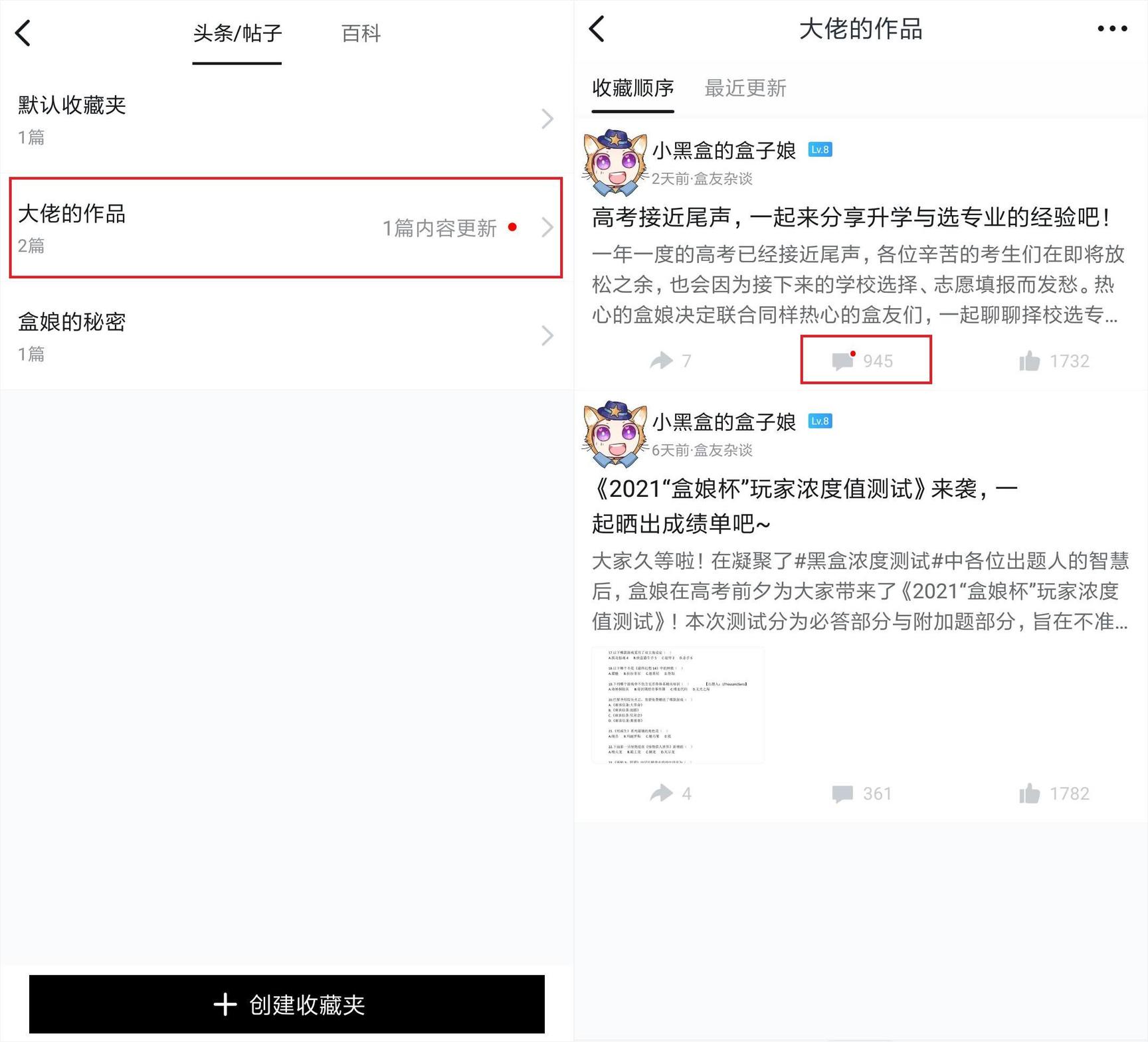 也可以在个人主页的收藏栏中先手创建,不给被收藏的帖子一点点防备。