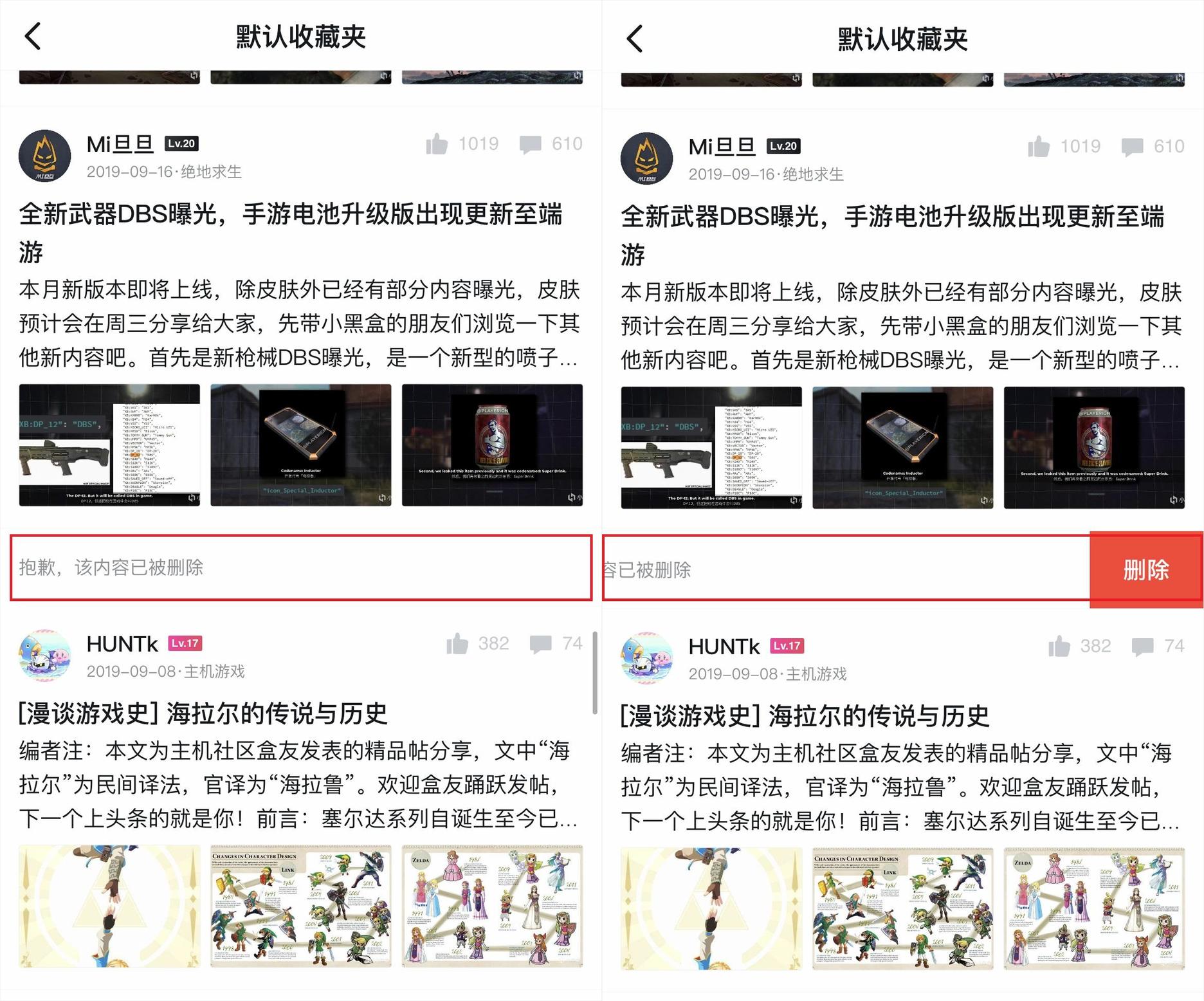 收藏后失效的帖子将会以下图的形式展现,可同样使用左滑召唤红色的“删除”来进行删除。