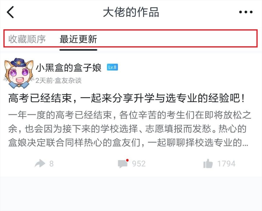 收藏夹会按照“收藏顺序”与“最近更新”两种方式排序,可在收藏夹内进行选择。
