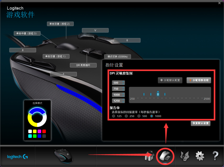 这里就以我用的罗技鼠标为例吧。如果用的是其他品牌的鼠标,建议自行百度如何设置DPI。