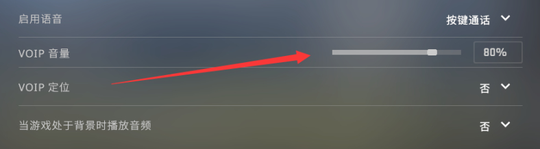 接着是VOIP音量选项,这个选项是用来单独调整队友语音的音量大小,避免队友声音太大听不清脚步等游戏声音。