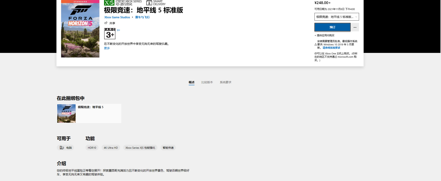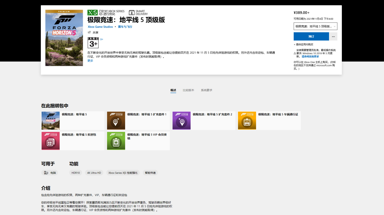 - 包括:基础游戏,车辆通行证,扩充套件1,扩充套件2,欢迎礼包,VIP会员资格,抢先体验资格将于 2021 年 11 月 5 日开始。