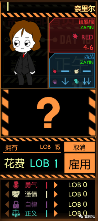 每结束一天的管理,我们能够得到LOB点数作为奖励,玩家可以通过花费LOB点数来雇佣或者训练员工。