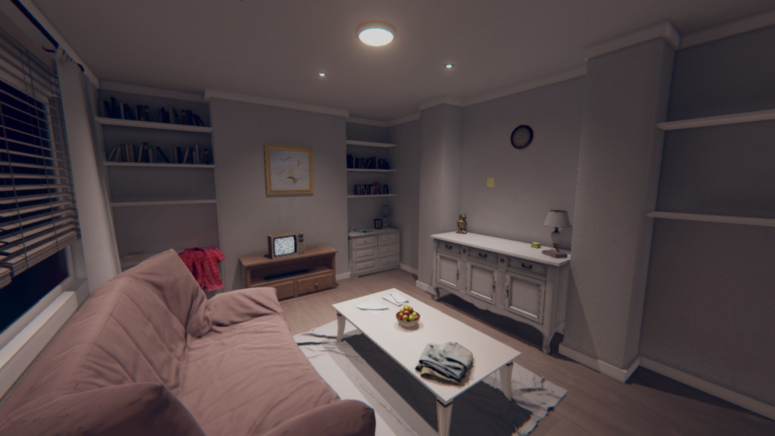 整个画面看起来非常干净,一开始明亮的房间让我怀疑这是不是恐怖游戏,接下来的就又是熟悉的核能手电筒,直到回到主角的家。家里的布局可以说是相当温馨,而且主角家的房子是真的大。