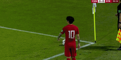 第42分钟,国足破门!武磊前场中路将球分给右侧的张稀哲,后者得球后抬头观察对手门将站位后右脚抽射将球轰入球门!1-0!国足半场结束前取得领先!