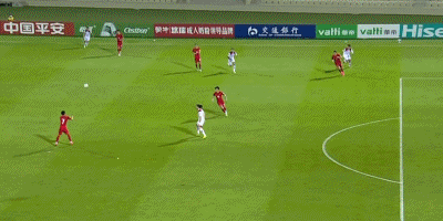 第76分钟,张玉宁中场将球想前直塞,武磊凭借速度得球后已成单刀之势,但他最终的射门却偏门而出。