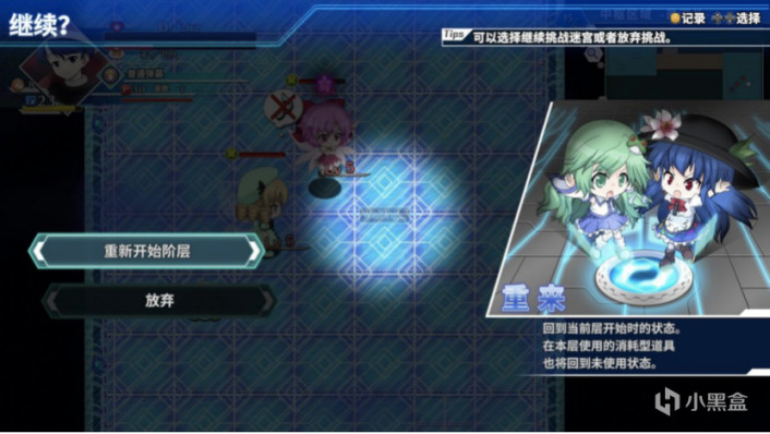 玩法方面,大方向上还是传统的不可思议迷宫那套,即以探索随机生成布局的迷宫以及角色之间的回合制对战为核心,所以游戏在教程关卡的时候向导也会询问玩家要不要多啰嗦几句(这里有个小分支,早苗线的向导是稗田阿求,而天子线的向导是本居小铃)。