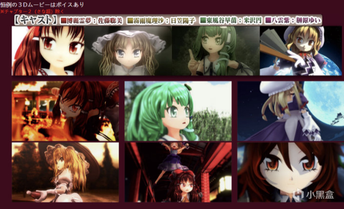 至于画面方面,本作及其系列可以说在东方同人二创中都是画风相当精细的一派了,萌系的日式风格立绘和可爱的Q版小人形象,同时社团本家又有二十年的相关制作经验,也可谓是独具匠心了。不过本人在翻阅了其游戏制作列表后发现整体画风的变化差别不是很大,甚至很早就开始尝试使用3D模型来演出过场动画。