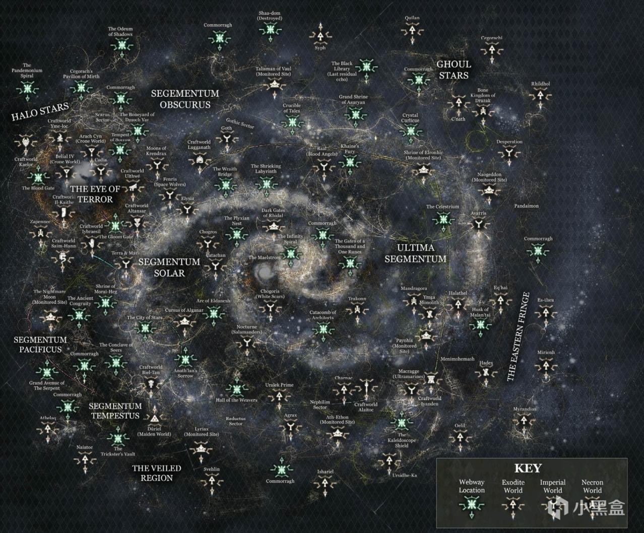 此处简要科普下介绍要网道。作为古圣的造物,网道可被理解为建设于亚空间与现实物质世界之间夹层里的“海底高速地铁隧道”,它在现实物质世界的不同角落均有彼此连通的出入口,而其本体由一种特殊的反灵能材料构成(注:GW曾借很多作品暗示网道涉及到对亚空间的利用,最明显的证据当属爆发于999.M41的亚空间“大裂隙”事件直接导致很多网道路径严重受损),这意味着网道能有效避免亚空间的侵蚀,其内部更是自成一个(相对而言的)独立空间,尽管混沌恶魔依旧有几率攻破网道的防御而侵入其中。