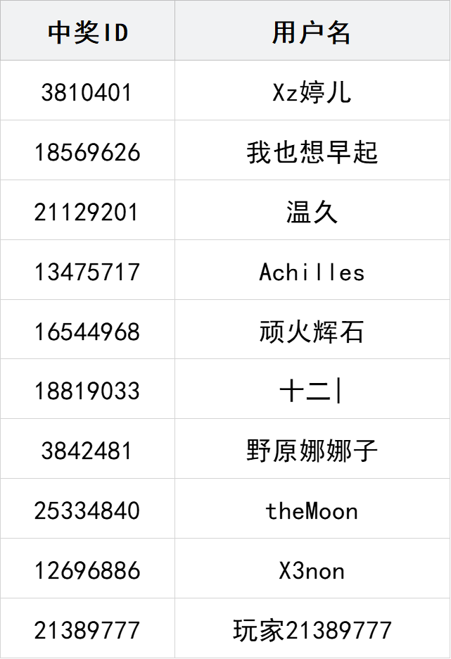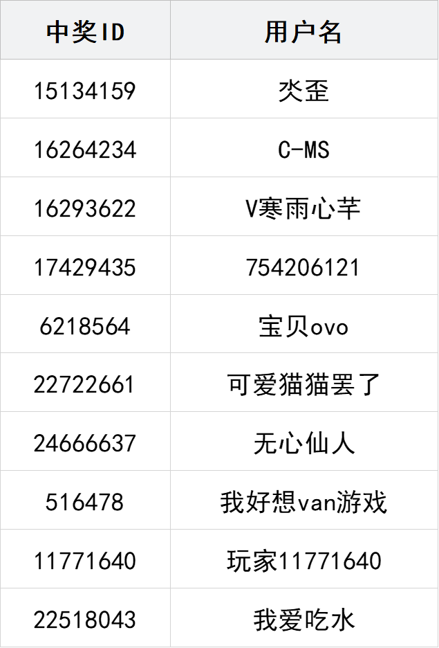 社区帖中奖名单: