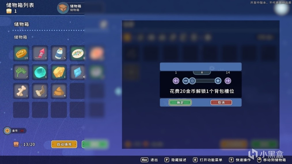 打开储物箱时升级背包格子可能会卡住,建议大家直接打开背包进行升级槽位