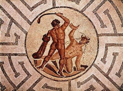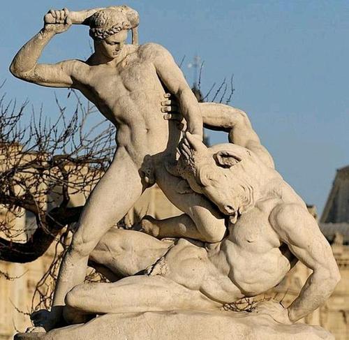 【一种说法是忒修斯叫醒了牛头怪并与他决斗,也有一种说法是他趁着怪物睡着杀死了它】