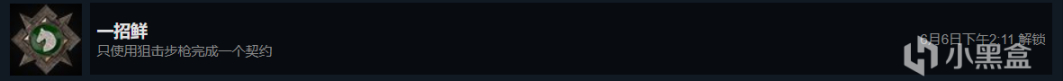 该成就建议选那些刺杀目标的契约做,任务过程中只能使用狙击步枪清人,狙掉主要目标之后赶紧去撤离点上传数据就能解锁成就