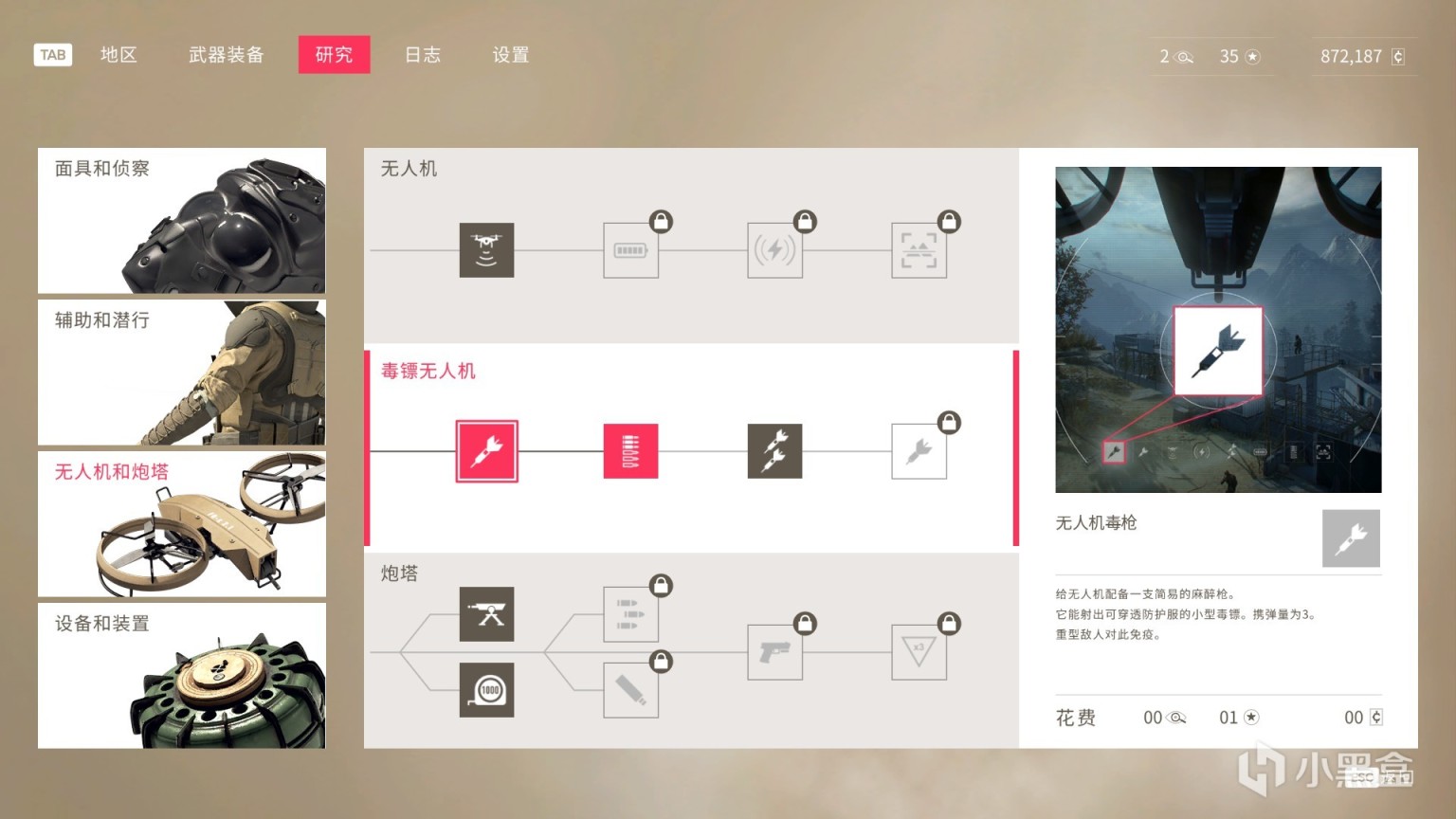 购买无人机之后,需要解锁研发,无人机才能发射毒枪,建议在拉希达堡垒地图上,杀拉希达的时候使用,需要注意反无人机塔