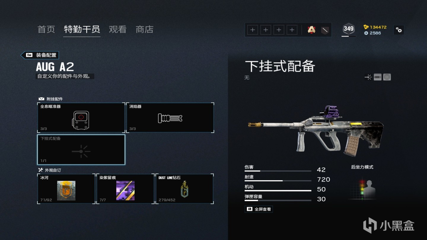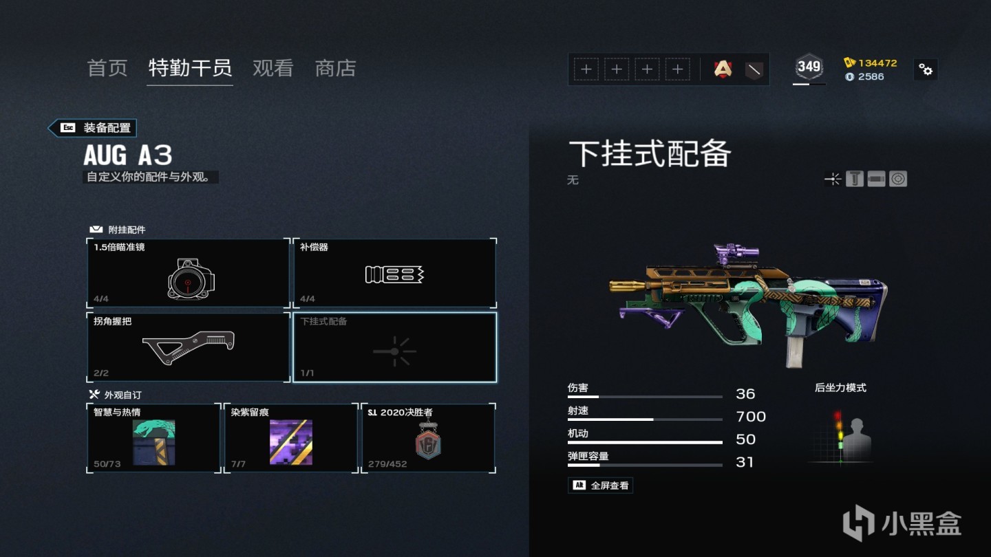 AUG A3 个人选择 后段后坐力偏左 所以选择补偿 AUG家族在R6特有的开镜慢 带转角
