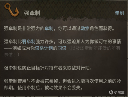 其实就是拿着把柄要挟人家AI,强制让其答应原本不会答应的事情。需要注意的是,弱牵制是一次性的,并且有时间限制,到了时间就没了。