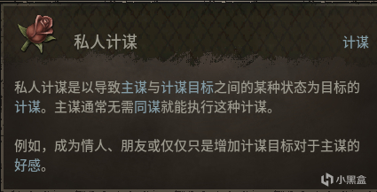 阴谋计划能比较直接的扫除你的敌对目标,而私人计谋主要的目的还是提升好感度。