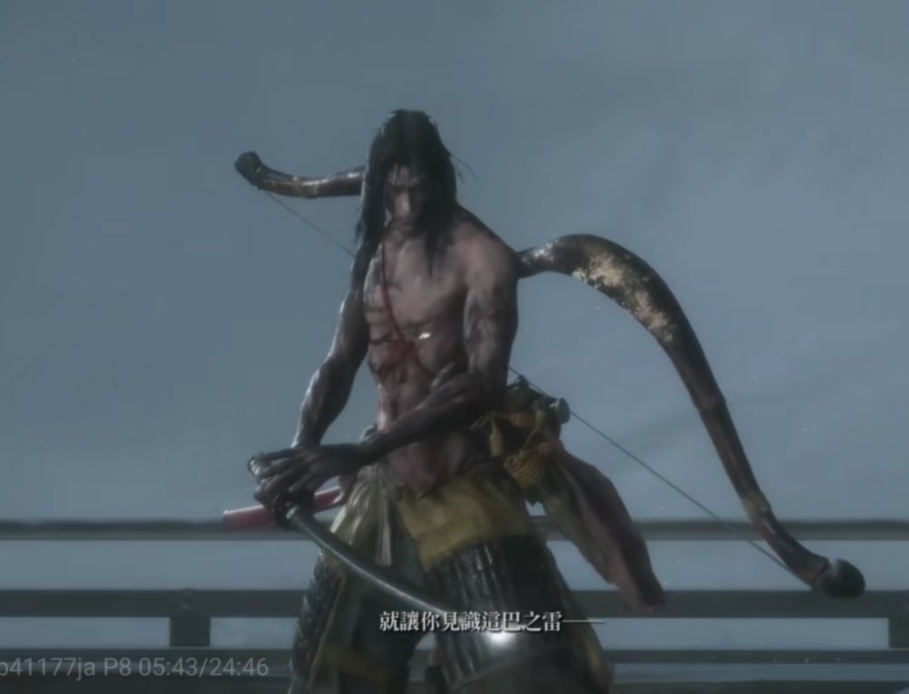 这便是初见,身披厚重的盔甲,背后背着一张巨大的弓箭,随手便拔出一把一米多左右的长刀,我们与他的对决就开始了