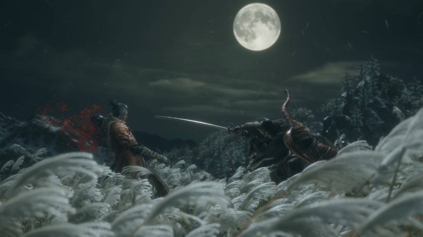 月下,战火,芦苇地。开始也是结束。他拖着狼狈的身躯,听着战场上苇名士兵的哀嚎。再一次向我们拔出了刀。